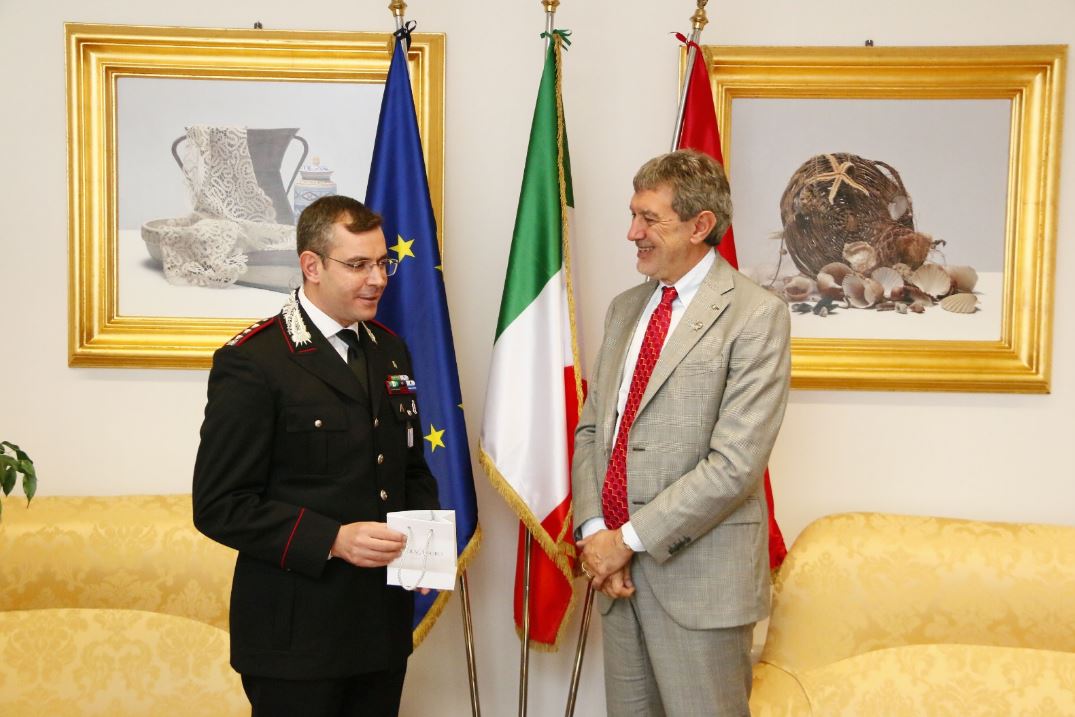 (REGFLASH) L’Aquila, 16 set. Questa mattina il presidente della Regione, Marco Marsilio, ha ricevuto in visita istituzionale a Palazzo Silone il colonnello Salvatore Del Campo, nuovo comandante provinciale dei carabinieri dell’Aquila. Si è trattato di un incontro ispirato alla massima collaborazione. Nel corso del cordiale colloquio sono stati affrontati temi legati alla sicurezza e alla legalità. Al colonnello Del Campo il presidente Marsilio ha porto gli auguri a nome dell’intera giunta regionale. (REGFLASH) US 241016