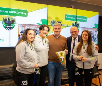 (REGFLASH) L'Aquila, 5 nov. - L’Assessore regionale allo Sport, Mario Quaglieri, ha premiato oggi la storica società CUSAQ Volley, una delle realtà pi