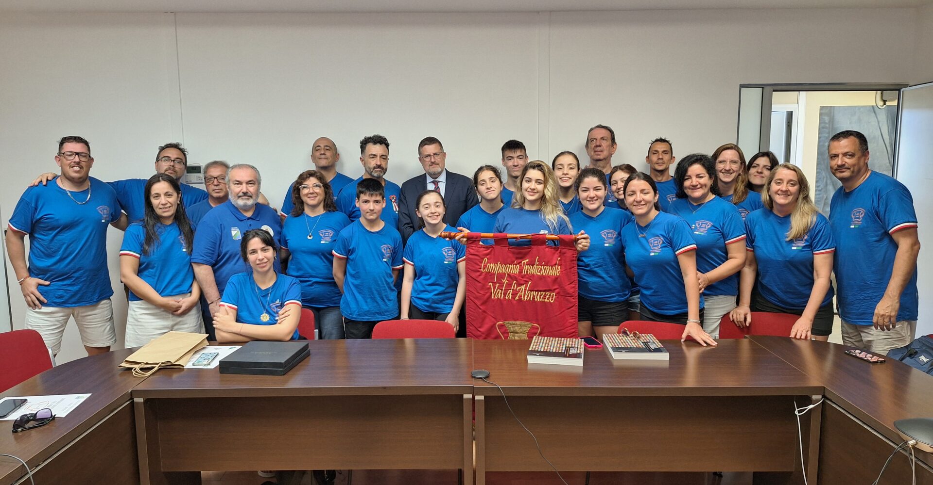 (REGFLASH) Pescara, 9 ago. – Con una breve cerimonia presso la sede della Regione a Pescara, l’assessore alla Cultura, Roberto Santangelo, ha portato il saluto dell’intera regione alla compagnia folkloristica argentina “Compagnia tradizionale Val d’Abruzzo” in tournée in Abruzzo. La compagnia ha in programma una serie di concerti ed esibizioni ed è composta da figli di emigranti abruzzesi in Argentina.
