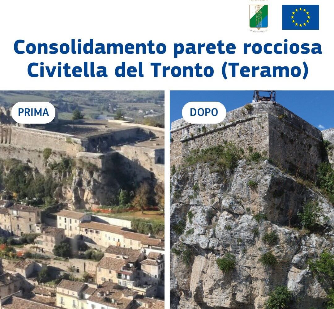Grazie a un investimento complessivo di 13 milioni di euro provenienti dai Fondi europei, l’Abruzzo ha portato a termine opere di risanamento e mitigazione del dissesto idrogeologico in diversi comuni del cratere sismico. Tra i progetti più rappresentativi vi sono gli interventi realizzati a Castelli, Civitella del Tronto e Pizzoli. A Castelli, l’intervento ha reso possibile la messa in sicurezza del versante franoso che isolava il borgo, noto per la sua tradizione ceramica, ripristinando così l’accesso e garantendo protezione alla comunità. Nello stesso spirito di tutela del patrimonio e delle persone, a Civitella del Tronto si è proceduto al consolidamento della rupe che sorregge il borgo, preservando la popolazione e la storica Fortezza, con un contributo anche alla valorizzazione turistica. Nel comune di Pizzoli, invece, le opere di contenimento delle colate di fango e detriti provenienti dalle pendici del Monte Marine hanno ridotto il rischio per le abitazioni e le attività economiche locali.